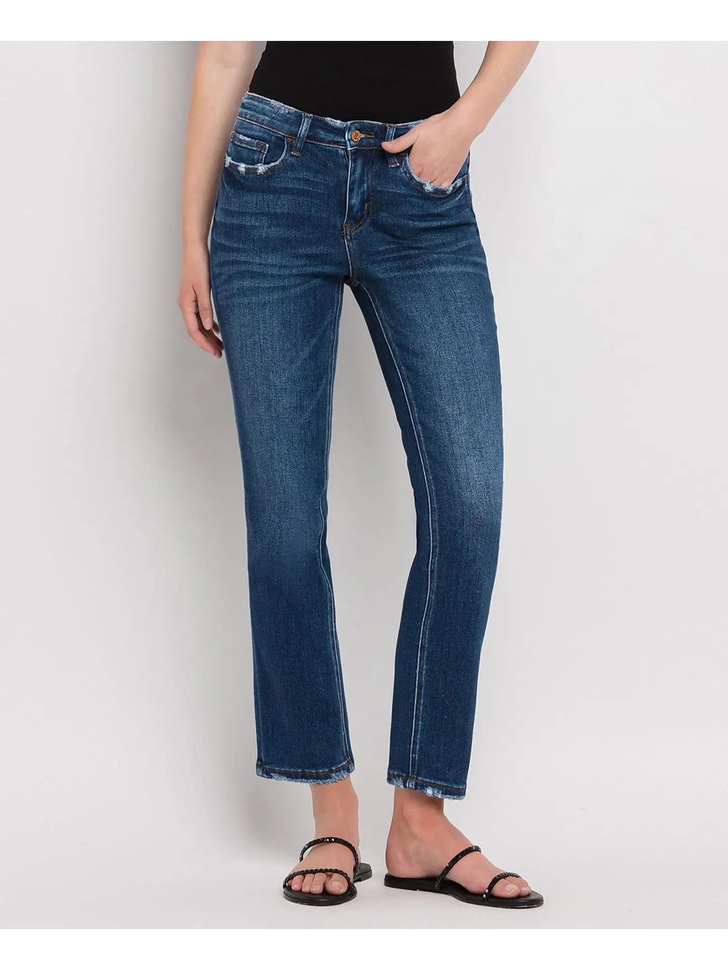 MID RISE ANKLE SLIM STRAIGHT JEANS COMFORT STRETCH DENIM, MID RISE WAIST, ANKLE LENGTH, SLIM STRAIGHT JEANS