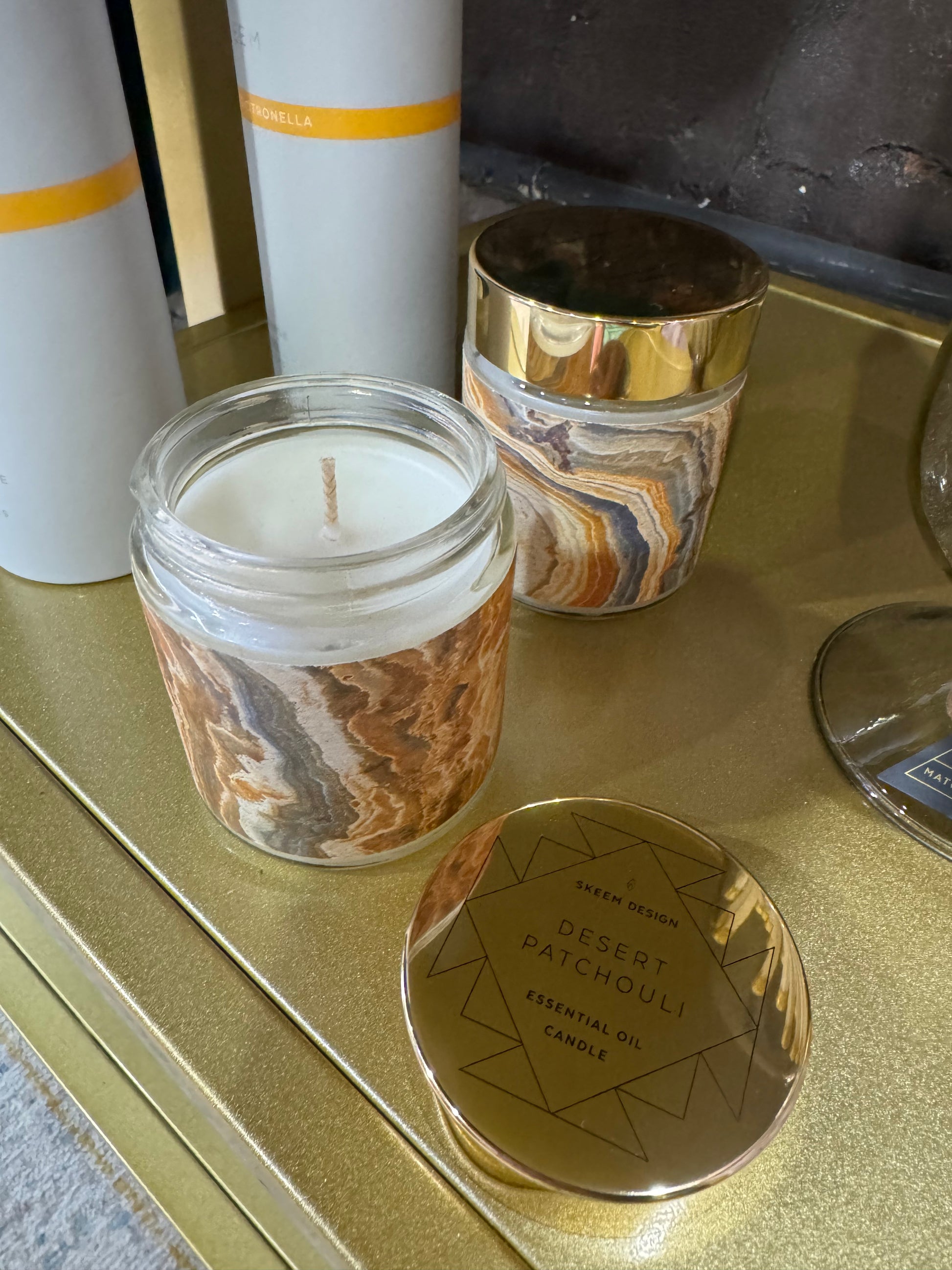 The beautiful natural colors and textures of rocks, crystals, and gemstones were the inspiration behind this collection. They have long been known to hold sacred energy and aid in healing, meditation, and self-exploration. Each glass candle is wrapped in a full-color paper label that glows warmly once the candle is lit. Topped by a metallic gold lid, they will add a bit of boho chic to your space. All styles contain rich blends of essential oils and are poured from our exclusive soy wax blend.