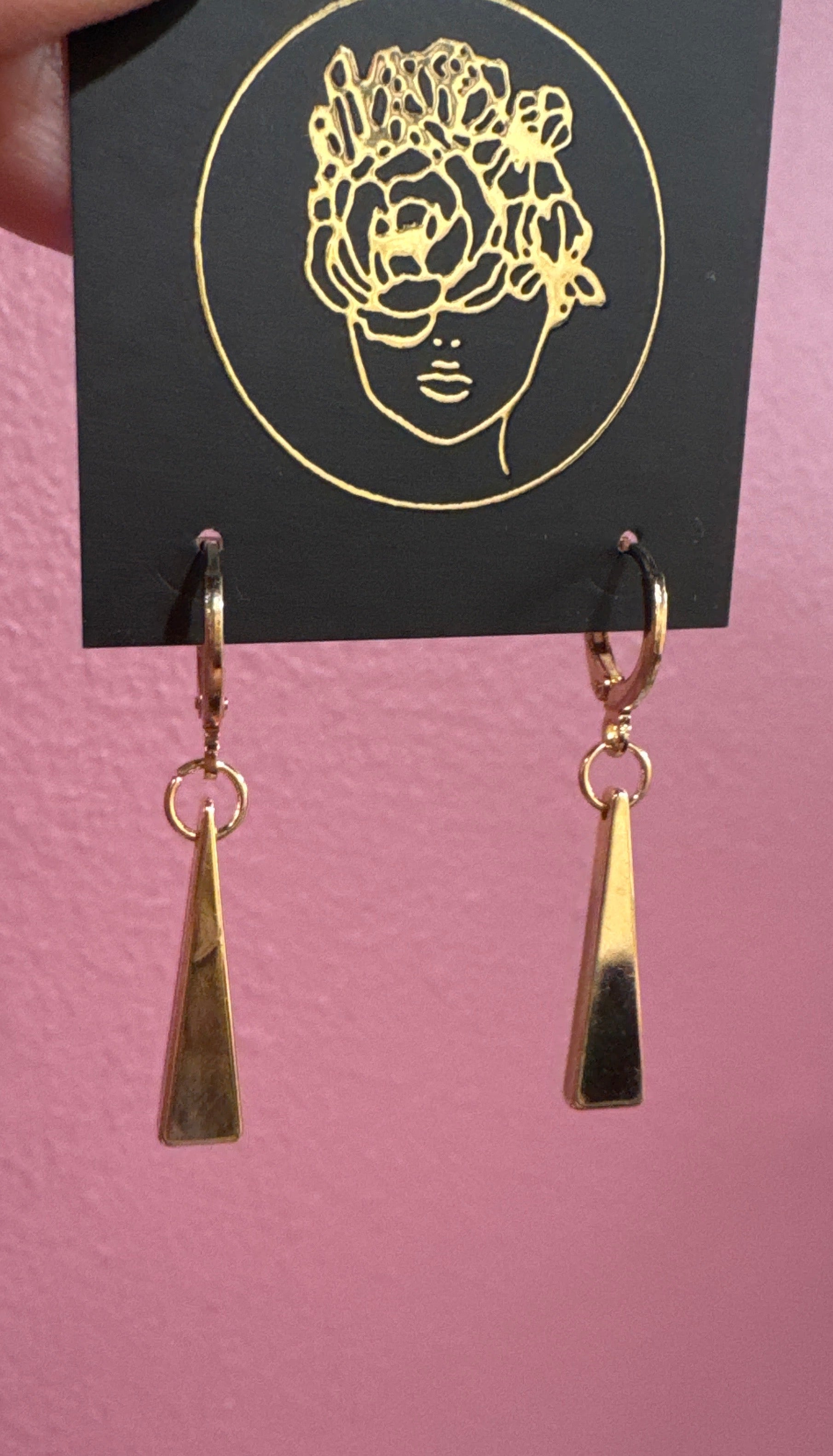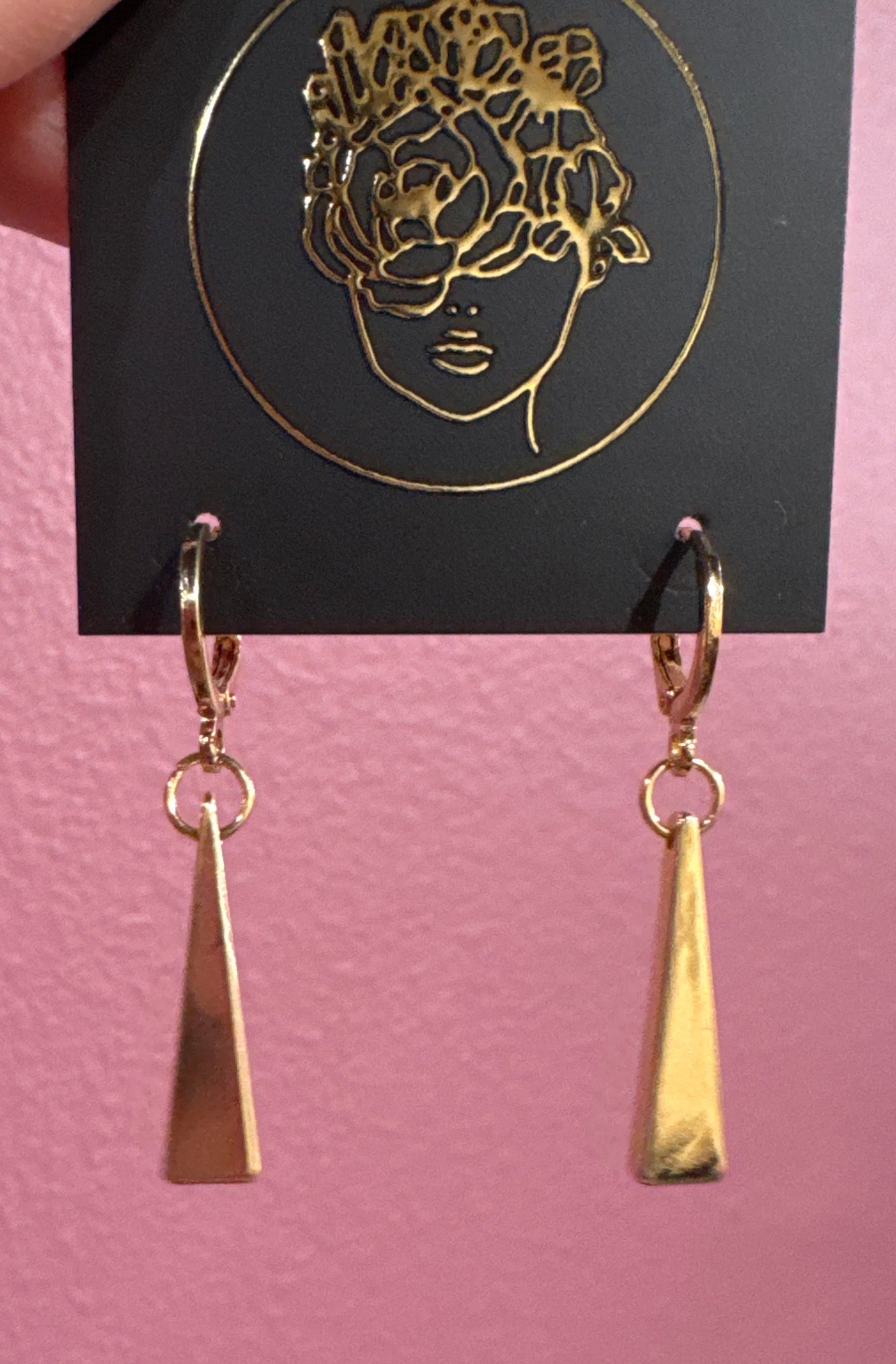 Add instant edge to your jewelry collection with these Gold Triangle Geo Huggies. Sleek, modern, and effortlessly cool, these huggies feature a bold geometric triangle design that hugs your ears perfectly while making a statement.