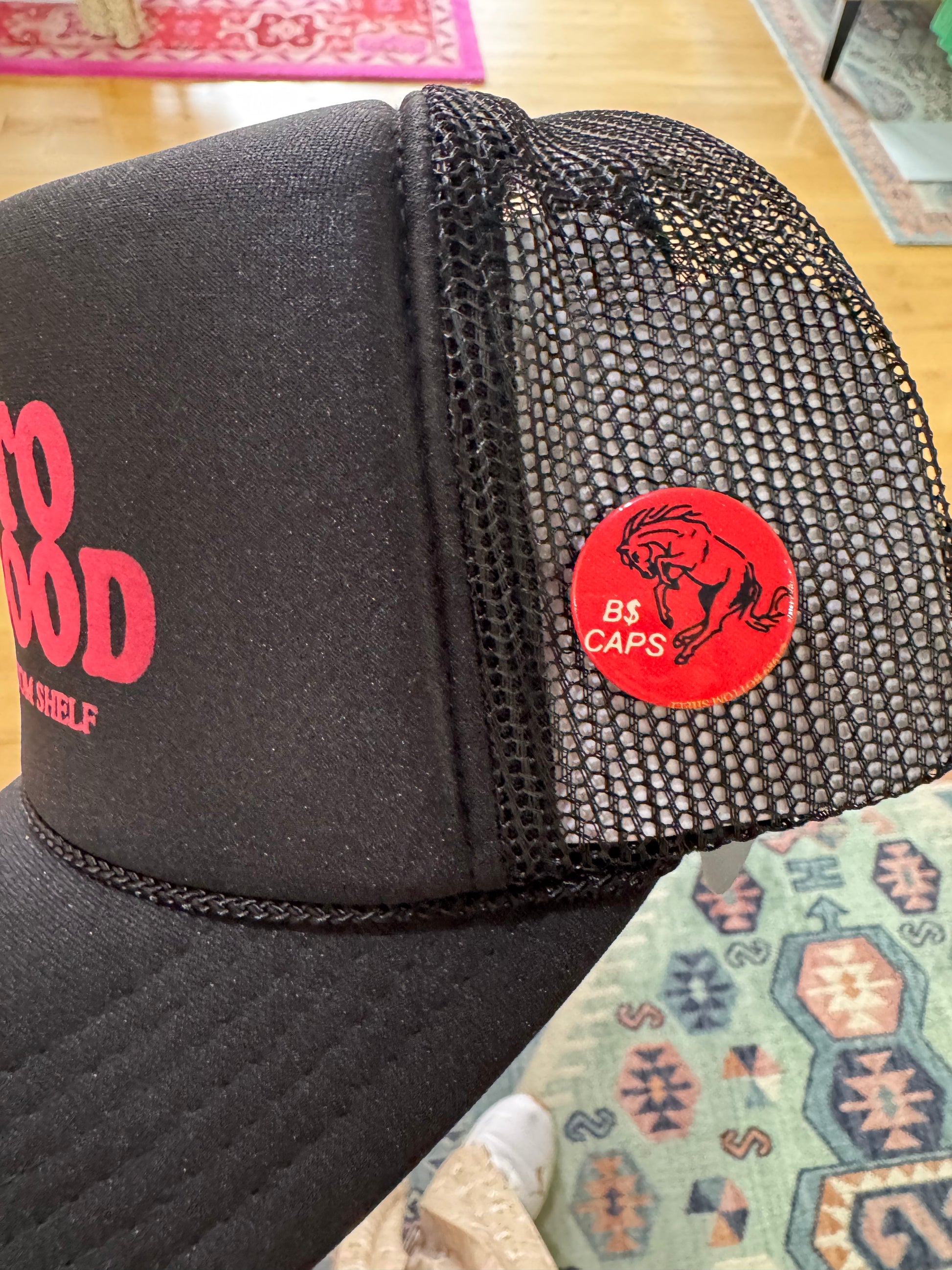 All B$ Caps come with a paired pinback button.